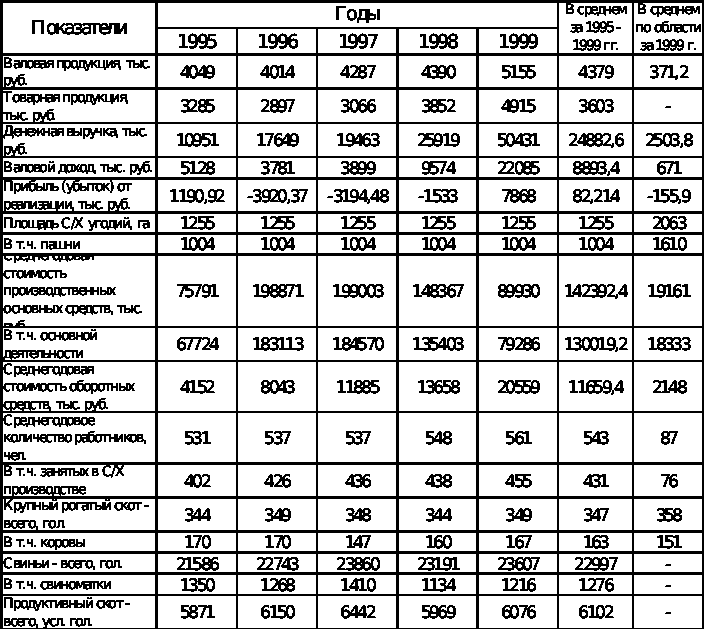 Прямой показатель размера сельскохозяйственного предприятия – это объем валовой и товарной продукции в денежном выражении (для сопоставимости в ценах одного года). Значение валовой продукции в сопоставимых ценах 1994 года за период 1995 – 1999 гг. увеличилось на 27,3%.