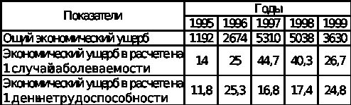 | Экономический ущерб в расчете на 1 случай заболеваемости | 14 | 25 | 44.7 | 40.3 | 26.7 |