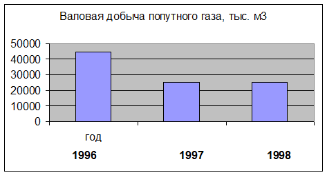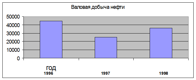 Добыча нефти по НГДУ составила 4302 тыс. тонн, что меньше на 552 тыс. тонн по сравнению с 1997 годом. Основными причинами, не позволяющими поддерживать добычу нефти на стабильном уровне, является: резкое сокращение объемов эксплуатационного бурения с 667 тыс. м в 1995 году до 122 тыс. м – выбытие во временную консервацию в 1996 году – 648 скважин, в 1997 году - 133 скважины;