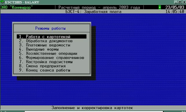 В этом режиме собраны все выходные формы системы. Режим позволяет печатать ведомости, расчетные листы и другие выходные формы. Здесь формируется расчетная ведомость на заработную плату, на основании которой создаются проводки на начисленную зарплату, удержания в фонды социального страхования и обеспечения и подоходный налог.