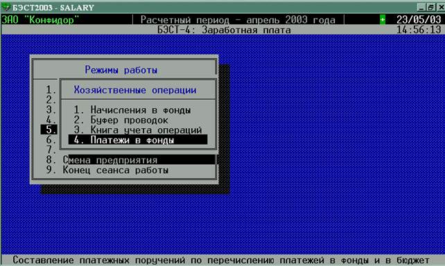 В этом режиме рассчитываются платежи в фонды, формируются проводки на начисления в фонды и создаются платежные поручения на платежи в фонды.