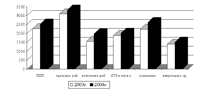 В 2004г. заработной платы ППП на предприятии «ОРМЕТО-ЮУМЗ» увеличилось по сравнению с 2003г. на 271,52 руб. или на 12%. В 2004г. заработной платы производственных рабочих увеличилось по сравнению с 2003г на 216,92 руб. или на 7%. В 2004г. заработной платы вспомогательных рабочих увеличилась по сравнению с 2003г. на 429,39 руб. или на 27,7%. В 2004г. заработной платы ИТР и, в том числе служащих увеличилась по сравнению с 2003г. на 139,24 руб. или на 7,4%. В 2004г. заработной платы руководителей увеличилась по сравнению с 2003г. на 390,23 руб. или на 17,5%. В 2004г. заработной платы непромышленной группы увеличилась по сравнению с 2003г на 118,96 руб. или на 8,6%. В общем заработной платы в 2004г. на предприятии «ОРМЕТО-ЮУМЗ» увеличилась по сравнению с 2003г. на 153462.87руб. или на 1,01%.