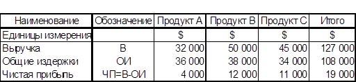 Компания производит три вида продуктов, по которым имеются следующие данные (табл.12):