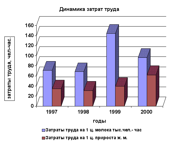Однако изучая данные затрат труда на 1 ц продукции необходимо отметить, что производство молока по сравнению с базисным годом возросло почти в 3 раза, следовательно и затраты не могли не возрасти.