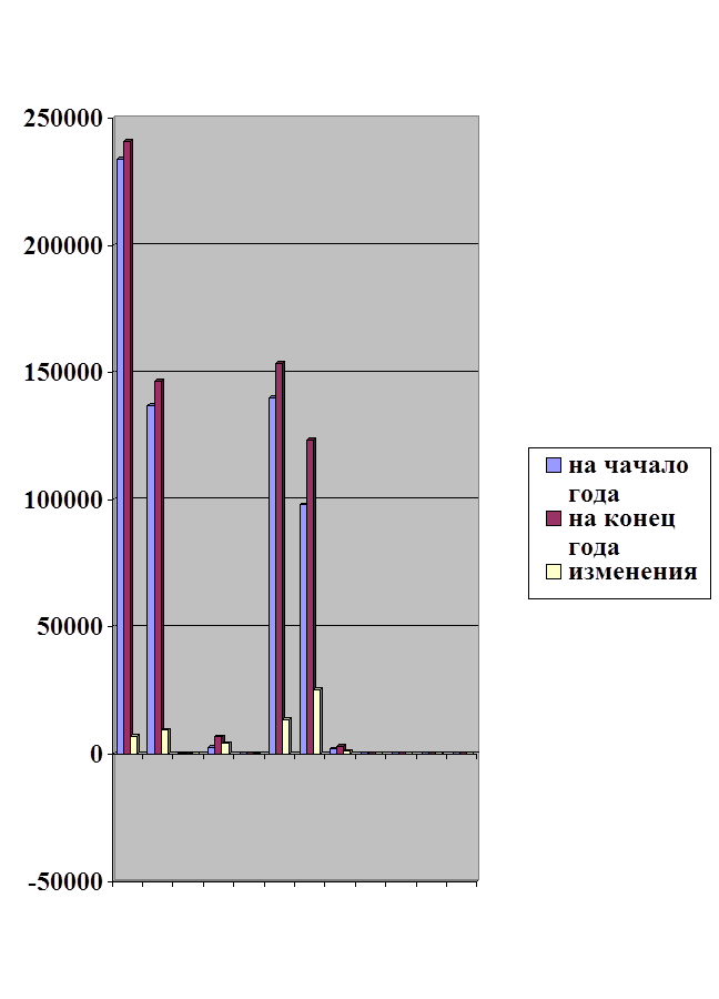 | 1.Общая стоимость 2.Основные средства 3. НМА 4.Производственные запасы 5.Незавершенное производство 6.Итого производственные активы 7.Сумма износа основных средств 8.Сумма износа НМА 9.Сумма капитальных вложений 10.Сумма финансовых вложений 11.Удельн. вес пр – ных активов в ст – сти им - ва 12. Уд. вес основн средств в ст- сти им – ва 13.Коэффициент износа основных средств 14.Коэффициент износа НМА 15.Уд вес капитальных вложений 16.Соотношение капитальных вложений и финансовых вложений |