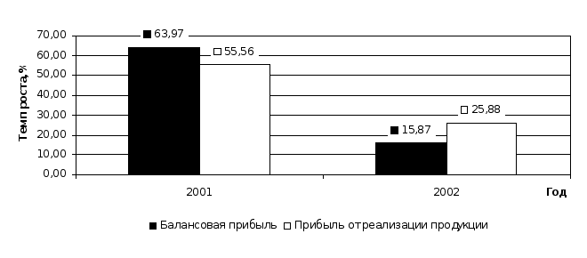 Если в 2002 году темп роста прибыли от реализации продукции и темп балансовой прибыли свидетельствуют о спаде в работе ЗАО «ИнфоЛинк97», то эти показатели за 2003 год показывают катастрофическое положение. Причем, в 2002 году темп роста балансовой прибыли оказывается выше темпа роста прибыли от реализации продукции, 63,97 % и 55,56 % соответственно. Это связано со значительным уменьшением себестоимости с 5389,1 тыс. руб. в 2001 году до 3793,2 тыс. руб. в 2002 году. В 2003 году темп роста прибыли от реализации продукции выше темпа роста балансовой прибыли, 25,88 % и 15,87 % соответственно.