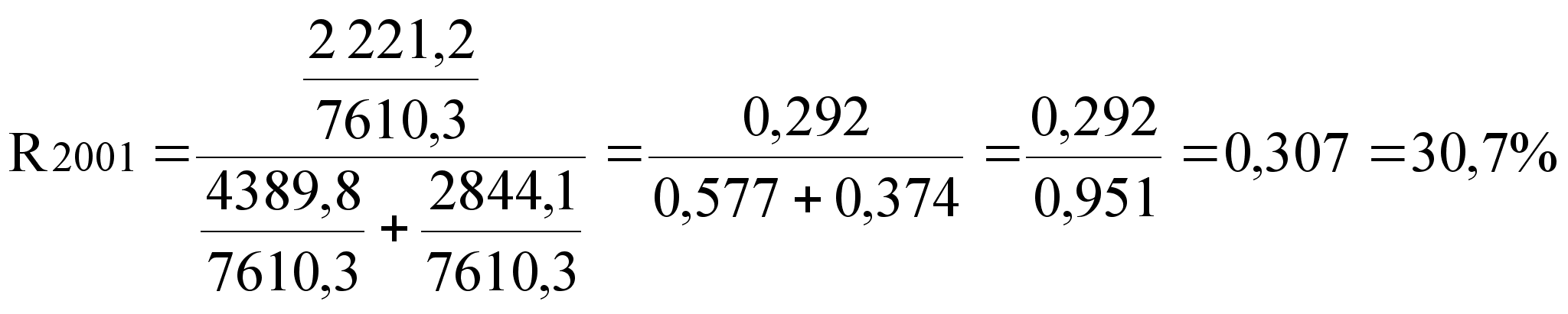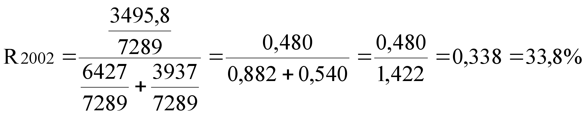 Прирост рентабельности за 2002 год в сравнении с рентабельностью 2001 года составляет 3,1 %. Влияние на это изменение оказали следующие факторы: прибыльность продукции на 19,8 %, фондоемкость на -12,3 % и оборачиваемость оборотных активов на -4,4 %.