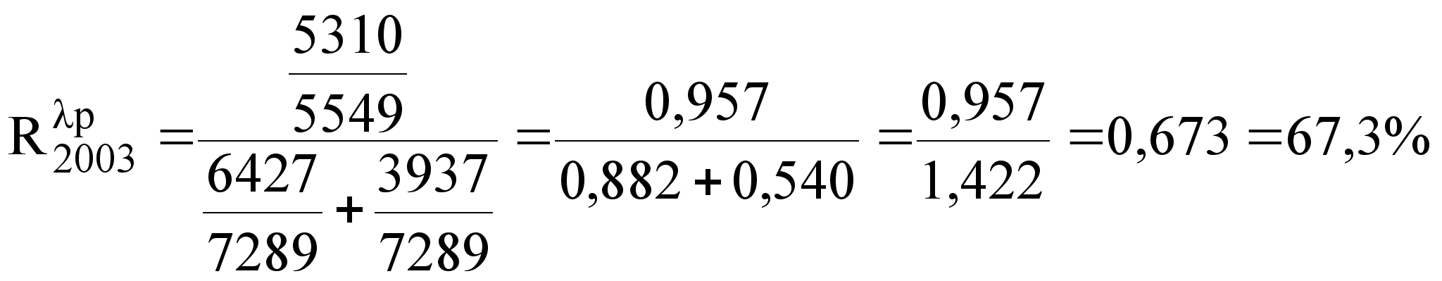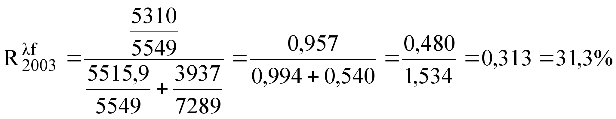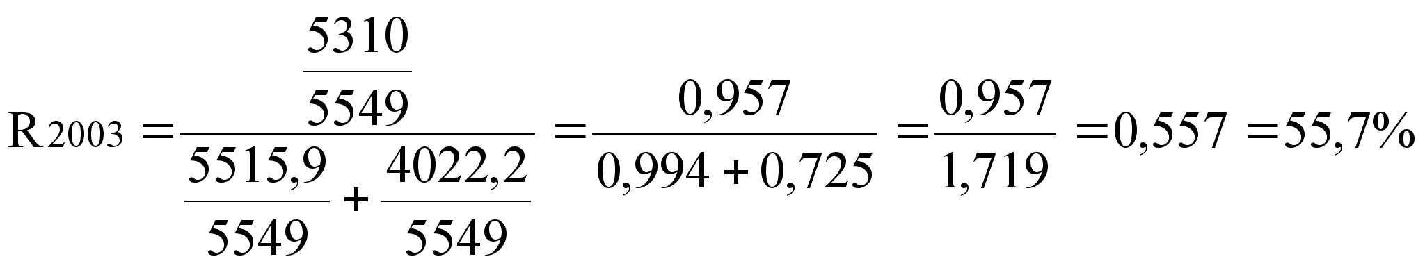 За 2003 год прибыльность продукции относительно 2002 года увеличилась на 0,477, фондоемкость 2003 года повысилась по сравнению с 2002 годом на 0,112. Оборачиваемость оборотных активов 2003 года увеличилась по сравнению с 2002 годом на 0,185 раз. В итоге, прирост рентабельности за 2003 год в сравнении с рентабельностью 2002 года составил 21,9 %. Влияние на это изменение оказали следующие факторы: прибыльность продукции на 33,5 %, фондоемкость на - 36,0 % и оборачиваемость оборотных активов на 24,4 %.
