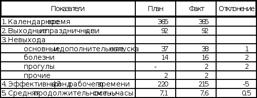Важной составной частью анализа производительности труда является анализ использования рабочего времени, приведенный в табл. 3.