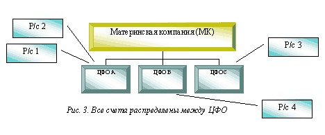 3) Смешанная структура: часть счетов и касс закреплена за ЦФО, часть - за МК.