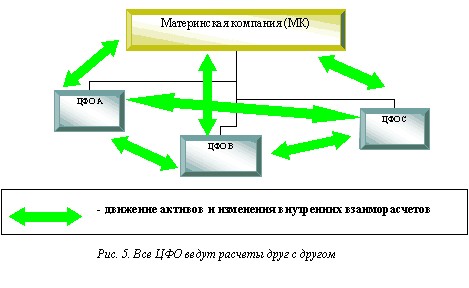 Подобная картина многократно усложняется там, где существует много ЦФО. Подобная идеология взаиморасчетов зачастую вынуждает иметь в каждом ЦФО финансиста, который помогал бы руководителю ЦФО анализировать внутренние взаиморасчеты и принимать решения по погашению долгов, их переводам, списаниям и др.