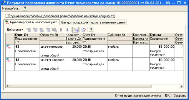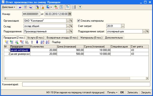 - Предусмотрены учет производственной деятельности, учет косвенных расходов.