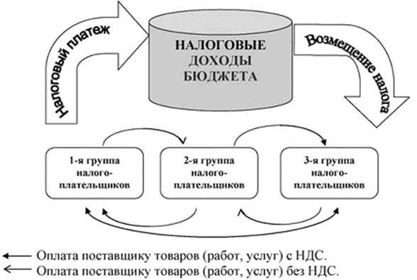 Важнейшим свойством косвенного налога является включение его в цену облагаемых товаров (работ, услуг) путем надбавок к цене или включения в издержки производства. В нормальных экономических условиях уплата косвенных налогов производится конечными потребителями, хотя вносят эти налоги в бюджет непосредственно продавцы и производители облагаемых товаров (работ, услуг). НДС обычно относят к категории универсальных косвенных налогов, которыми облагаются весь товарооборот на внутреннем рынке и товарооборот, складывающийся при осуществлении внешнеэкономической деятельности. Его перечисляют в доходы бюджета все производители товаров (работ, услуг) и продавцы, участвующие в сбыте товаров (работ, услуг).