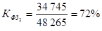 Характеризует долю собственного капитала в структуре капитала предприятия. Оптимальным соотношением считается уровень 60%. Таким образом, полученное значение свидетельствует о стабильной финансовой структуре средств, которой отдают предпочтения кредиторы, что является защитой от больших потерь в периоды спада деловой активности и гарантией получения кредитов.