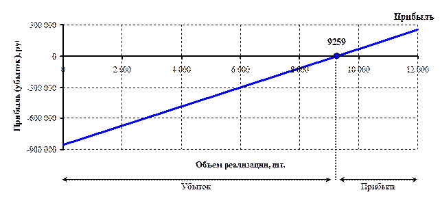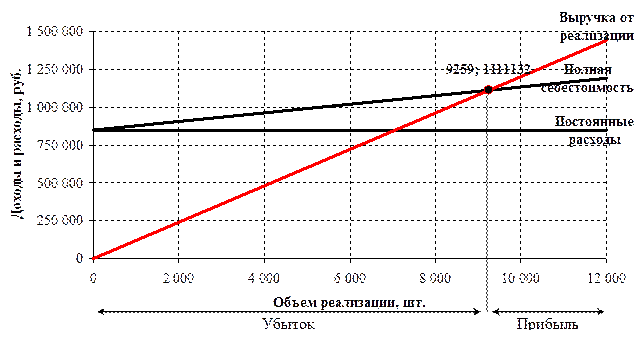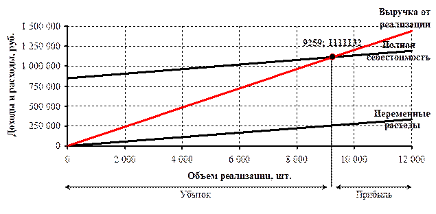 – объём производства изделия «Топорик хозяйственный» превышает точку безубыточности, которая находится на уровне 9259 шт.;