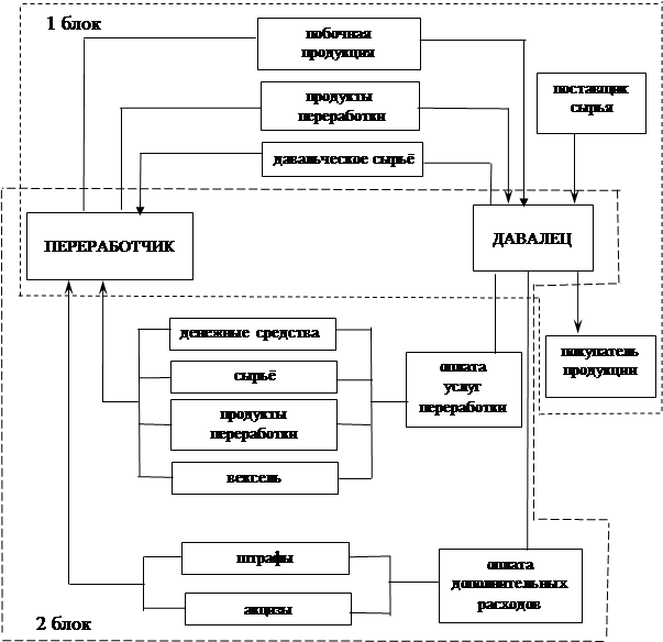 | Переработчик | – желание загрузить простаивающие производственные мощности – отсутствие оборотных средств для самостоятельного приобретения сырья, недоступность кредитов, наличие задолженностей, что не позволило бы использовать по назначению поступающую на расчётный счёт предоплату |