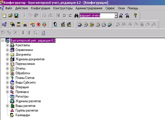 Конструкторы – вспомогательные инструменты, облегчающие разработку стандартных элементов системы 1С: Предприятие. В системе имеются конструкторы справочника, документа, журнала документов, отчета и вида субконто. Еще пять конструкторов облегчают разработку программных модулей в стандартных случаях.