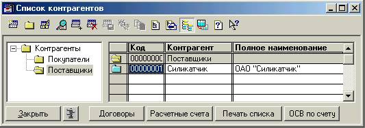 Рис. 2. Справочник контрагентов.