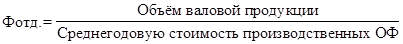 Фондоотдача наиболее обобщающий стоимостной показатель, представляющий собой отношение объема валовой продукции к среднегодовой стоимости производственных фондов.