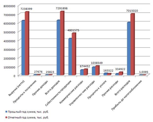 3.5 Анализ состава, структуры и динамики доходов и расходов показал, что в отчетном году общая сумма доходов предприятия составила 7 291 898 тыс. руб., что на 1 002 771 тыс. руб. или на 14 % больше, чем в прошлом году. Значительное влияние на рост доходов ООО «Рубин» оказала выручка от реализации продукции, величина которой увеличилась на 998 399 тыс. руб. или на 16 % больше по сравнению с прошлым годом.