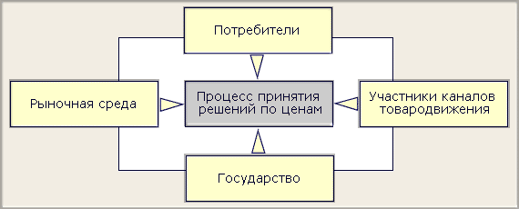 Цена не образуется сама по себе, а оказывается под влиянием внешних факторов. К последним можно отнести потребителей, рыночную среду, государство, участников каналов товародвижения.