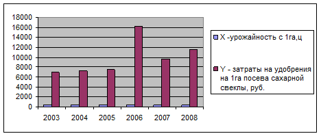 Анализ динамики урожайности сахарной свеклы показывает, что она увеличилась в 2008 году по сравнению с 2007 годом на 97,6 ц с 1 га.. А посевная площадь в 2008 году по сравнению с 2007 годом уменьшился на 691 га.