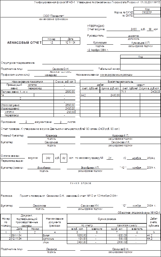 Целью данной работы является исследование учета расчетов с подотчетными лицами на примере ООО «Приоритет»