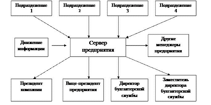 Кроме того, было принято решение установить в головном офисе предприятия и в подразделениях компьютерные сети с использованием сервера (рис.3.1).