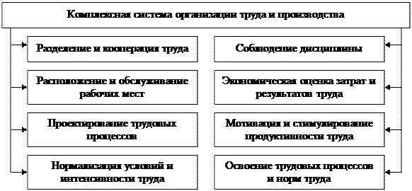 Комплексная система организации труда и производства включает 10 подсистем организации и управления трудом (см. рис. 1)