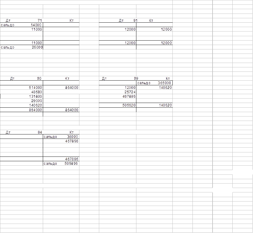 В результате сделанных проводок дебетовый и кредитовый обороты по сч.90 будут равны и в нашем случае получена прибыль, которая отражена проводкой Дт 90 Кт 99 в сумме 140620 рублей. Таким образом ,по состоянию на 1 января следующего года сальдо как по счету 90 в целом ,так и по всем открытым к нему субсчетам будет равно нулю. проведенной реализации по данному заданию