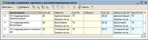 Заполнить справочник Способы отражения зарплаты в регламентированном учете