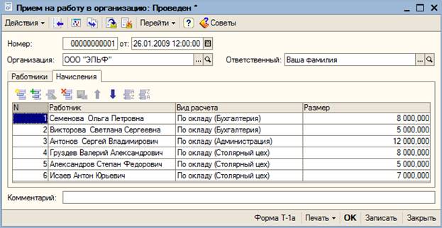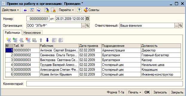 - Регистрация работника с использованием документа Прием на работу в организацию