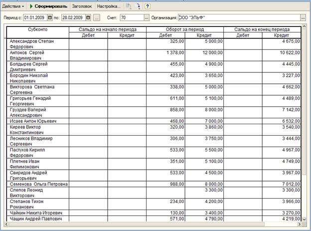 Сформировать оборотно-сальдовую ведомость за февраль т.г. Проанализировать остатки по счетам. При необходимости найти и устранить выявленные ошибки с помощью специализированных отчетных форм (ОСВ, Карточка счета, Анализ счета, Анализ субконто)