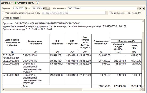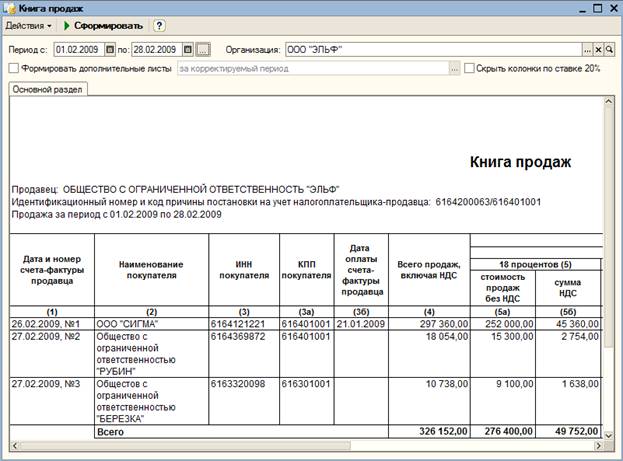 4. Сформировать Книгу продаж за январь - февраль т.г.