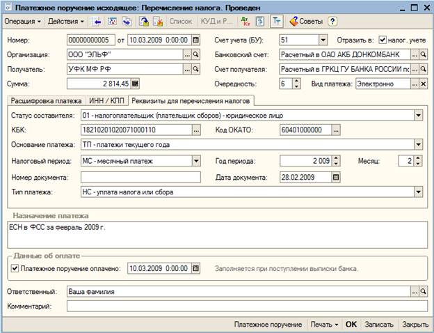 - Учет отчислений на социальные нужды – регистрируются документами Расчет ЕСН и Отражение зарплаты в регламентированном учете;