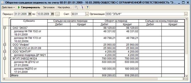 Проанализировать состояние дебиторской и кредиторской задолженности по состоянию на 10.03 т.г. по счетам 60.01, 62.01, При выявлении сальдо по одному из указанных счетов сформировать соответствующее платежное поручение для погашения текущего обязательства.