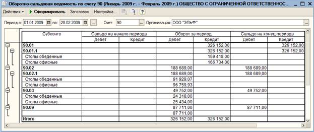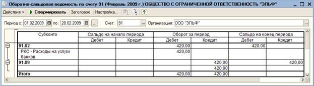 Сформировать Оборотно-сальдовые ведомости по счетам 90, 91 за февраль с детализацией по субсчетам. Проанализировать порядок формирования финансового результата от продаж и прочих операций.