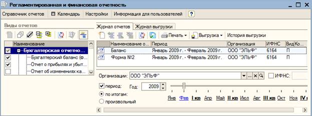 Подготовка регламентированной отчетности в программе осуществляется через пункт меню Отчеты - Регламентированная отчетность.