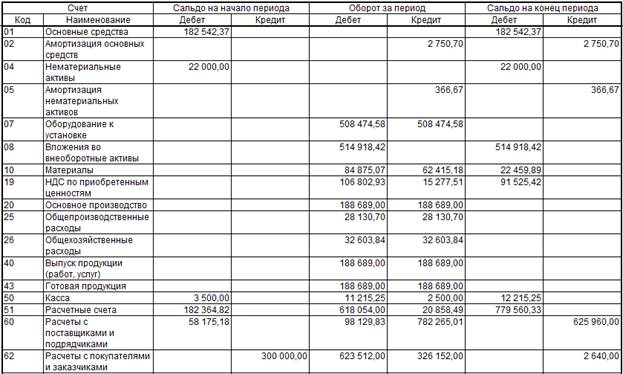 Контрольные цифры: 0 – СК по сч. 60.01, 62.01 (ОСВ по счетам 60.01, 62.01)