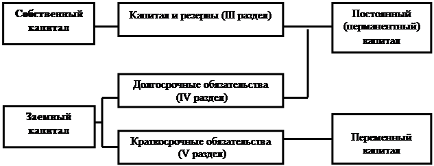 По продолжительности использования различают капитал долгосрочный постоянный (перманентный) – IIIи IVразделы баланса и краткосрочный – V раздел баланса. Структура пассива баланса приведена на Рис.4.
