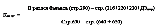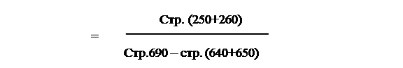 Медленно реализуемые активы / ((оборотные активы) – (текущие обязательства)), или стр.(210 + 220 + 230)/стр.(290–610 –620 – 630 – 660)