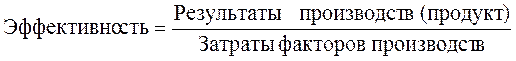 Важнейшая характеристика производства — эффективность. В самом общем вида эффективность можно определить как отношение между результатом и затратами на этот результат. Если предприятие осуществляет свою деятельность с минимальными затратами всех факторов производства, то примято говорить об эффективности производства данного хозяйственного субъекта.