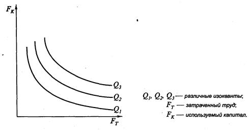 Изокванта — кривая, геометрическое место точек, соответствующих всем вариантам производственных факторов, использование которых обеспечивает одинаковый объем выпуска продукции.