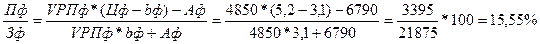 Пф = VРПф * (Цф – bф) – Апл = 4850 * (5,2 – 3,1) – 6790 = 3395 тыс. руб.