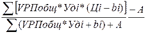 П = ∑(VРПобщ * Удi(Цi – bi)) - A