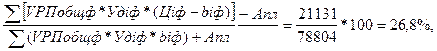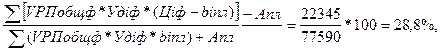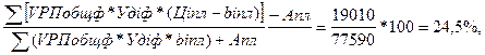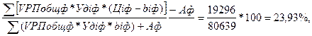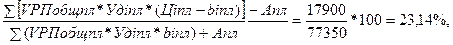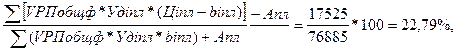 Ппл = ∑(VРПобщ.ф * Удiпл * (Цiпл – biпл)) – Aпл =