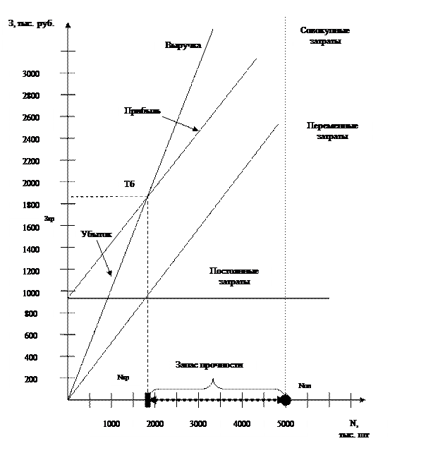Запас прочности = Nпл - Nкр = 5000 – 1845,2 = 3154,8 тыс. шт.