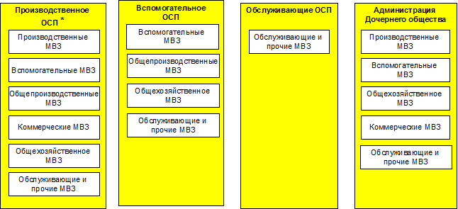 Общехозяйственные места возникновения затрат – МВЗ, осуществляющие управленческие функции в рамках как обособленных структурных подразделений, так и дочернего общества в целом.