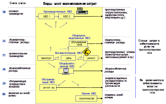 Производственные места возникновения затрат – МВЗ, непосредственно участвующие в осуществлении основного вида деятельности, затраты по которым напрямую относятся на себестоимость соответствующего основного вида деятельности. Производственные места возникновение затрат «Транспорт газа» – МВЗ основного производства, осуществляющие однородный технологический процесс по транспорту газа: