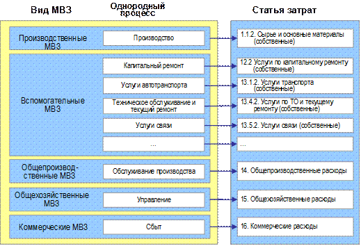- создания возможности сопоставления затрат соответствующих видов МВЗ с соответствующими счетами затрат системы бухгалтерского учета;